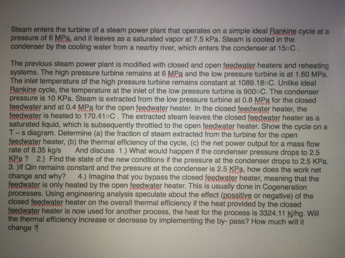 Chapter objective Study vapor power Heat passing to working fluid of a vapor power plant is usually if cooling water enters the condenser at 15°C and exits as 35°C. Discuss the effects on the vapor cycle of irreversibilities within the turbine and ... Access Doc
